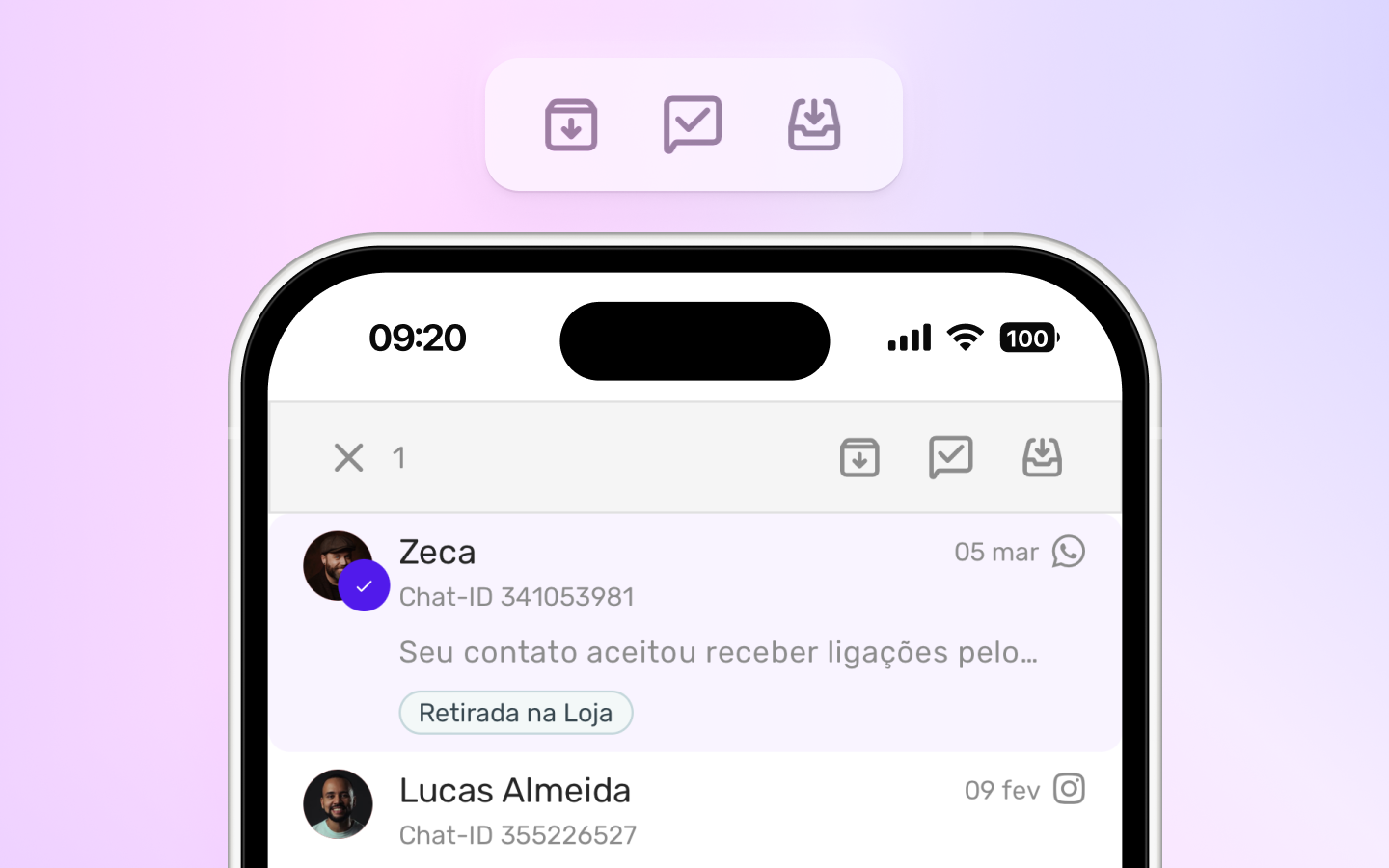 Liberamos com exclusividade no app a opção de finalizar, colocar na fila ou arquivar várias conversas de uma só vez.