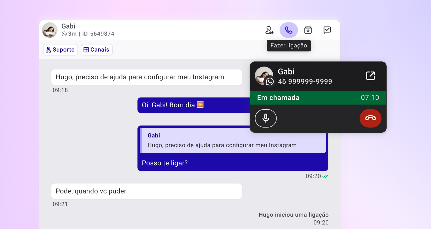 Use a Huggy para fazer ligações de voz no WhatsApp